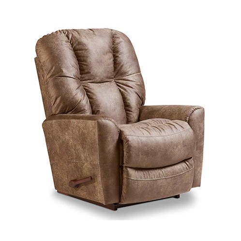 | For casual comfort that blends with any decor, the Rori Rocking Recliner is a perfect addition to any room. Sure to become a family favorite, Rori features a sculpted bucket seat with a one-piece chaise and legrest that cradles your body in comfort. Thin arm pads give Rori a clean and tailored shape, while the decorative top stitching is a touch that’s totally up to date. Simply use the convenient handle on the outside arm to raise the legrest for reading, relaxing or watching TV. When you’re not reclining, it’s a relaxing rocker with a smooth, graceful motion. | ||||